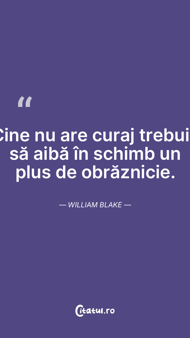 Cine nu are curaj trebuie să aibă în schimb un plus de obrăznicie. William Blake