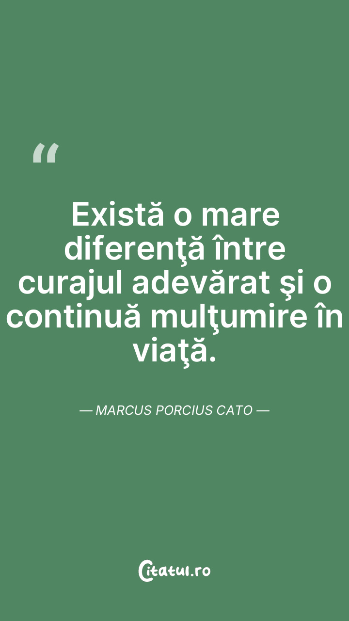 Există o mare diferenţă între curajul adevărat şi o continuă mulţumire în viaţă. Marcus Porcius Cato