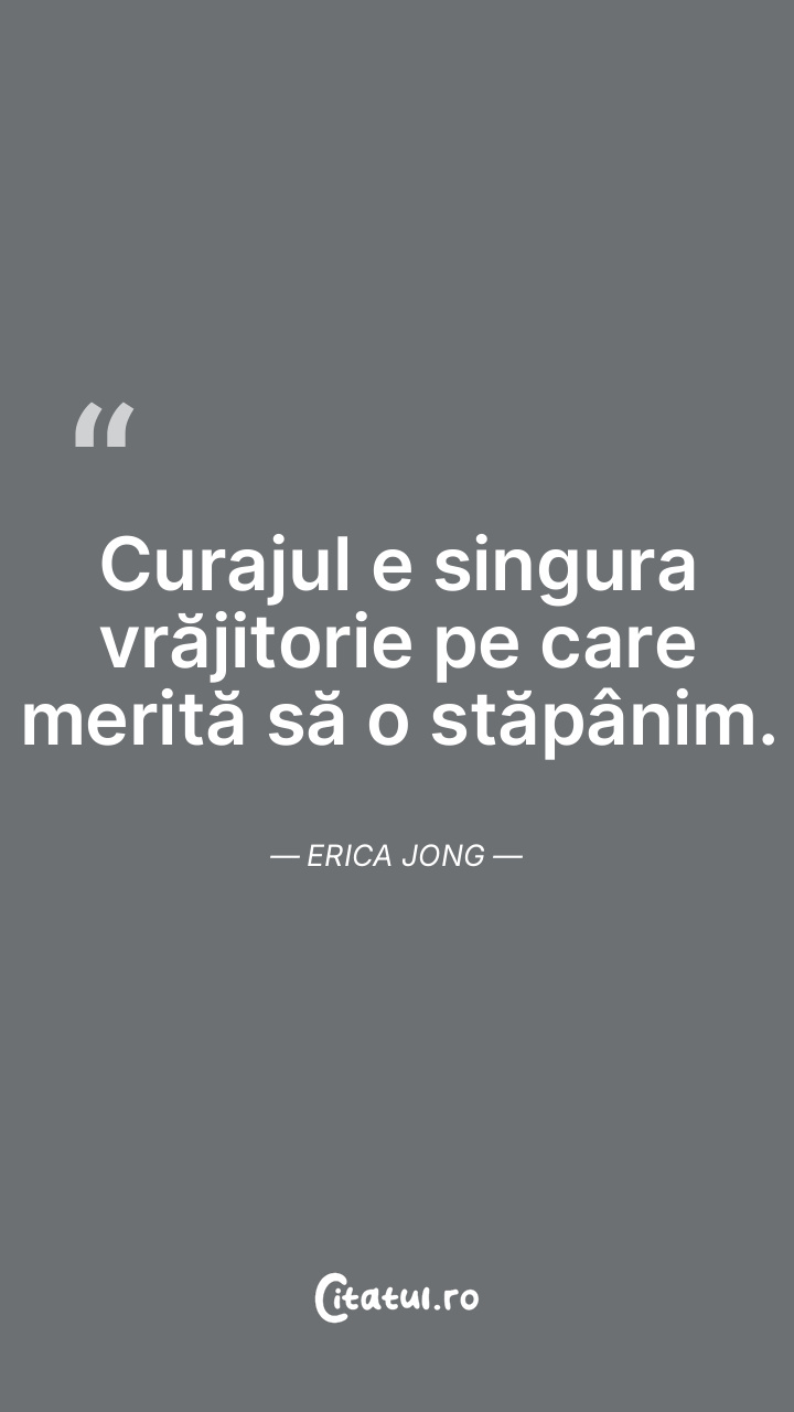 Curajul e singura vrăjitorie pe care merită să o stăpânim. Erica Jong