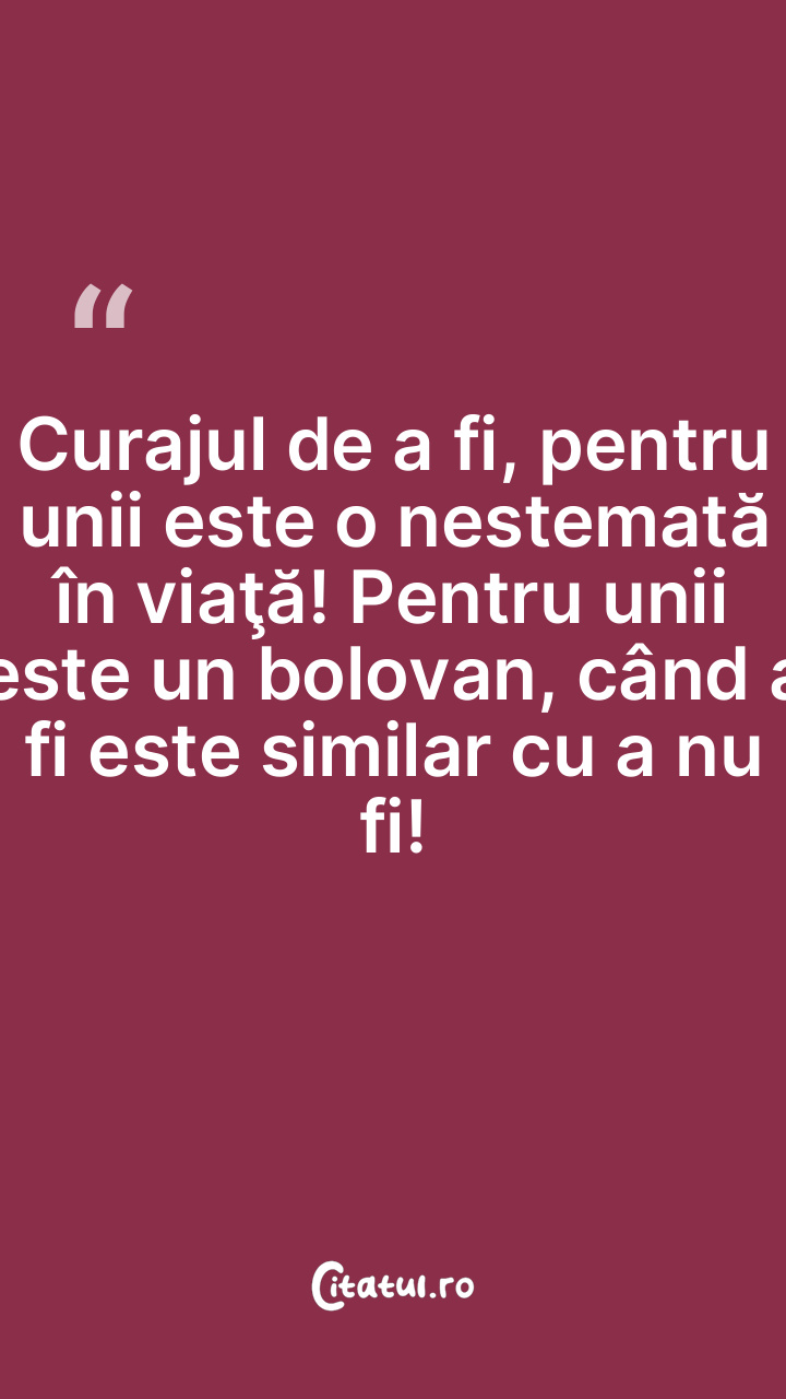Curajul de a fi, pentru unii este o nestemată în viaţă! Pentru unii este un bolovan, când a fi este similar cu a nu fi!