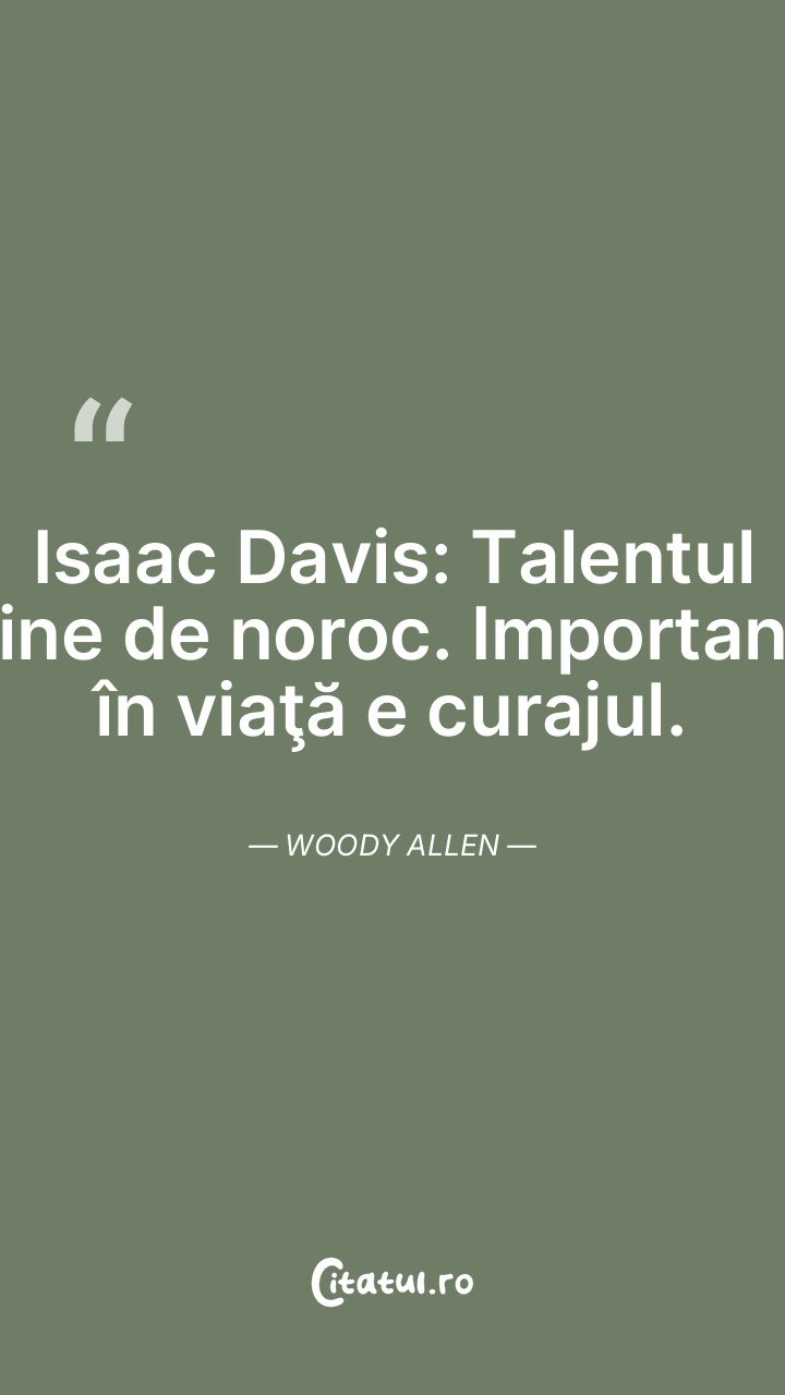 Isaac Davis: Talentul ţine de noroc. Important în viaţă e curajul. Woody Allen