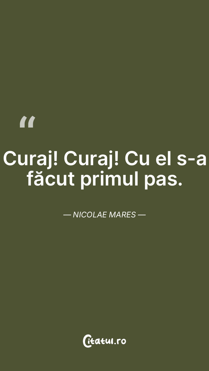 Curaj! Curaj! Cu el s-a făcut primul pas. Nicolae Mares