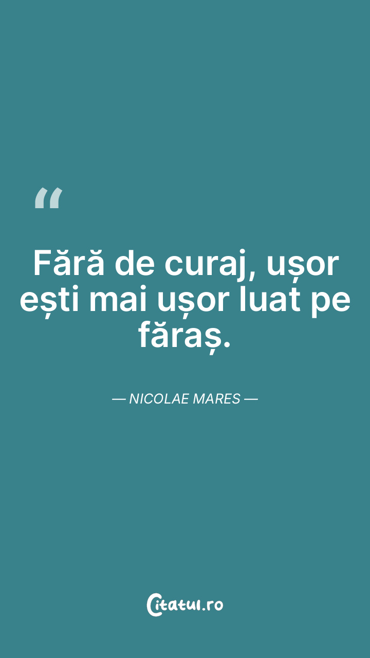 Fără de curaj, ușor ești mai ușor luat pe făraș. Nicolae Mares