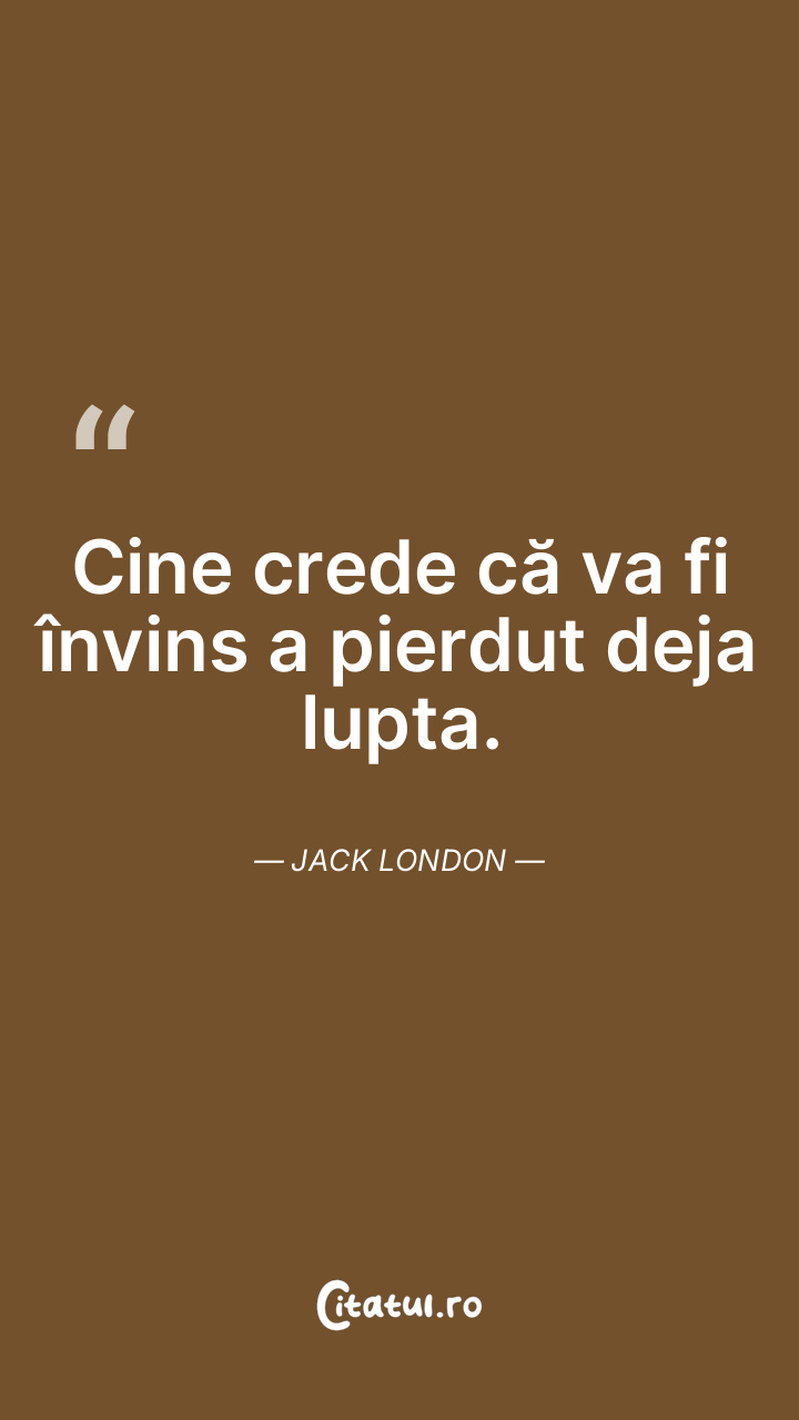 Cine crede că va fi învins a pierdut deja lupta. Jack London