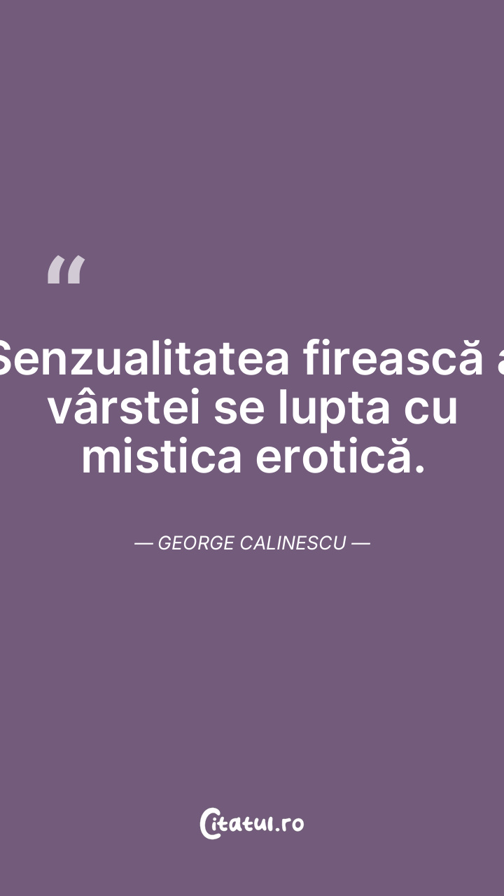 Senzualitatea firească a vârstei se lupta cu mistica erotică. George Calinescu