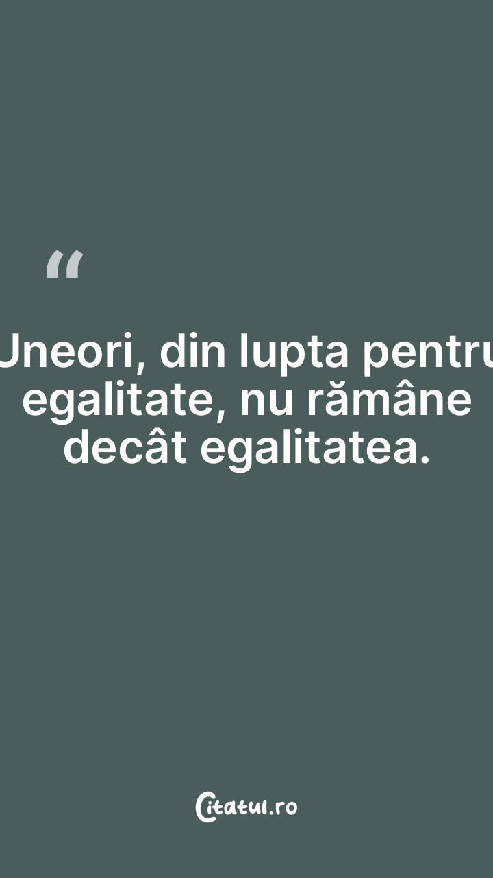 Uneori, din lupta pentru egalitate, nu rămâne decât egalitatea.