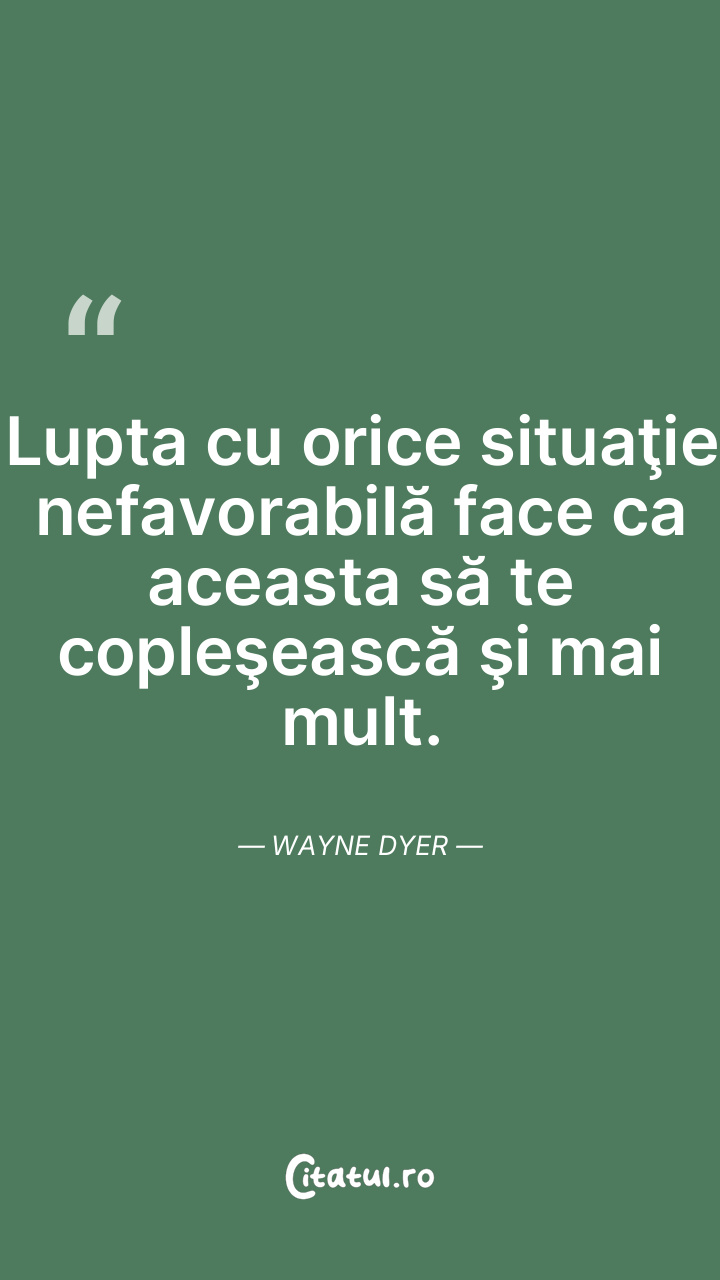 Lupta cu orice situaţie nefavorabilă face ca aceasta să te copleşească şi mai mult. Wayne Dyer