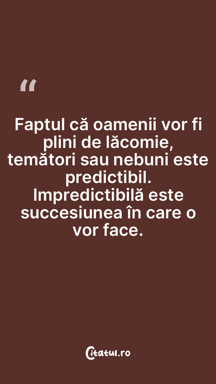 Faptul că oamenii vor fi plini de lăcomie, temători sau nebuni este predictibil. Impredictibilă este succesiunea în care o vor face.