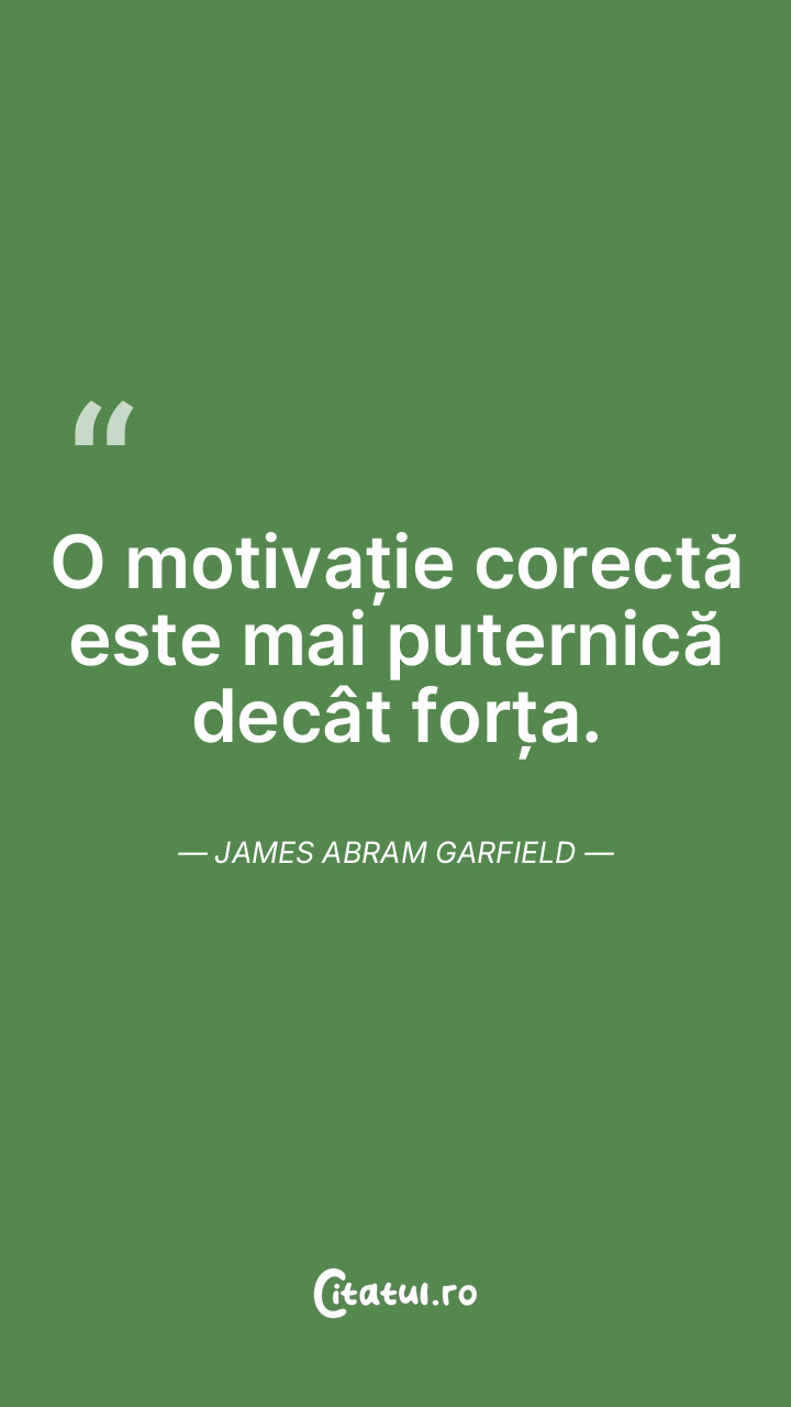 O motivație corectă este mai puternică decât forța. James Abram Garfield