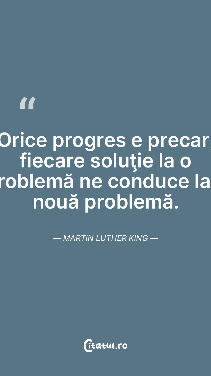 Orice progres e precar, fiecare soluţie la o problemă ne conduce la o nouă problemă. Martin Luther King