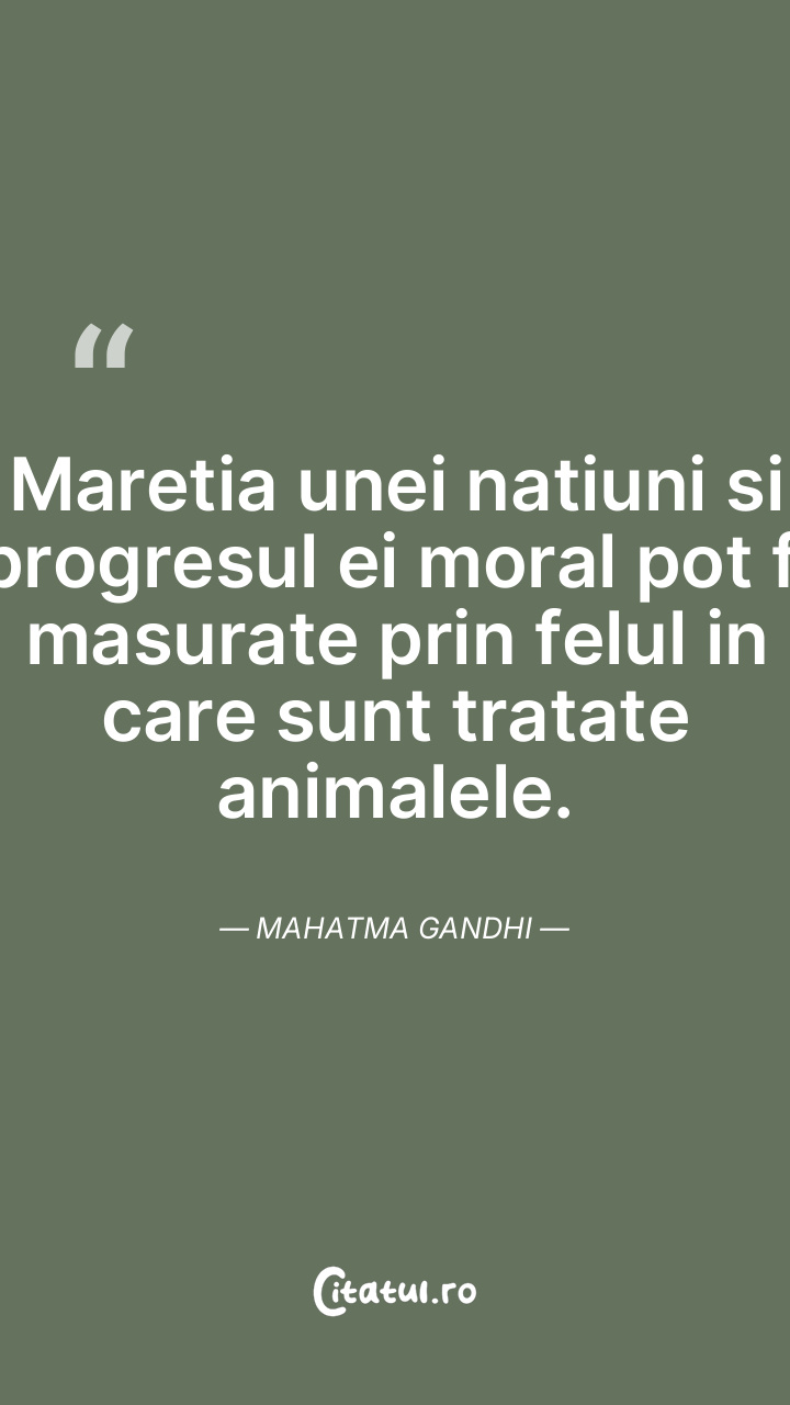 Maretia unei natiuni si progresul ei moral pot fi masurate prin felul in care sunt tratate animalele. Mahatma Gandhi