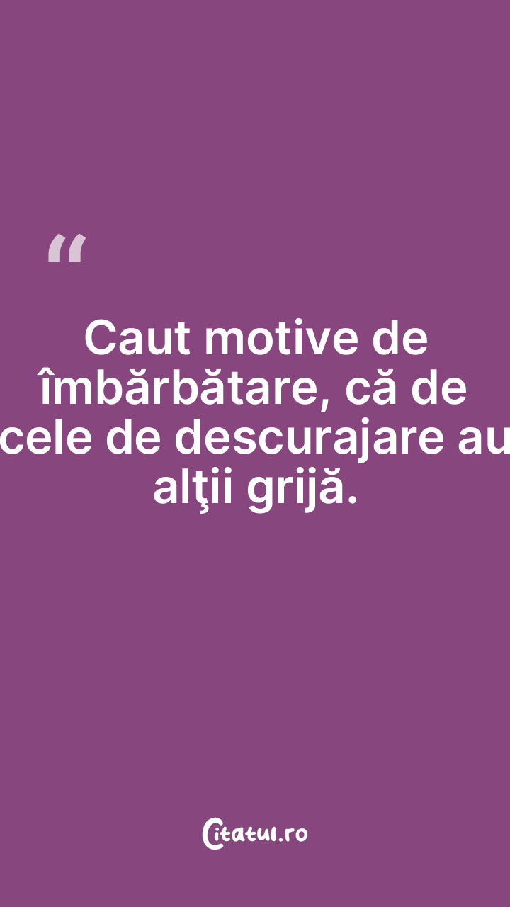 Caut motive de îmbărbătare, că de cele de descurajare au alţii grijă.