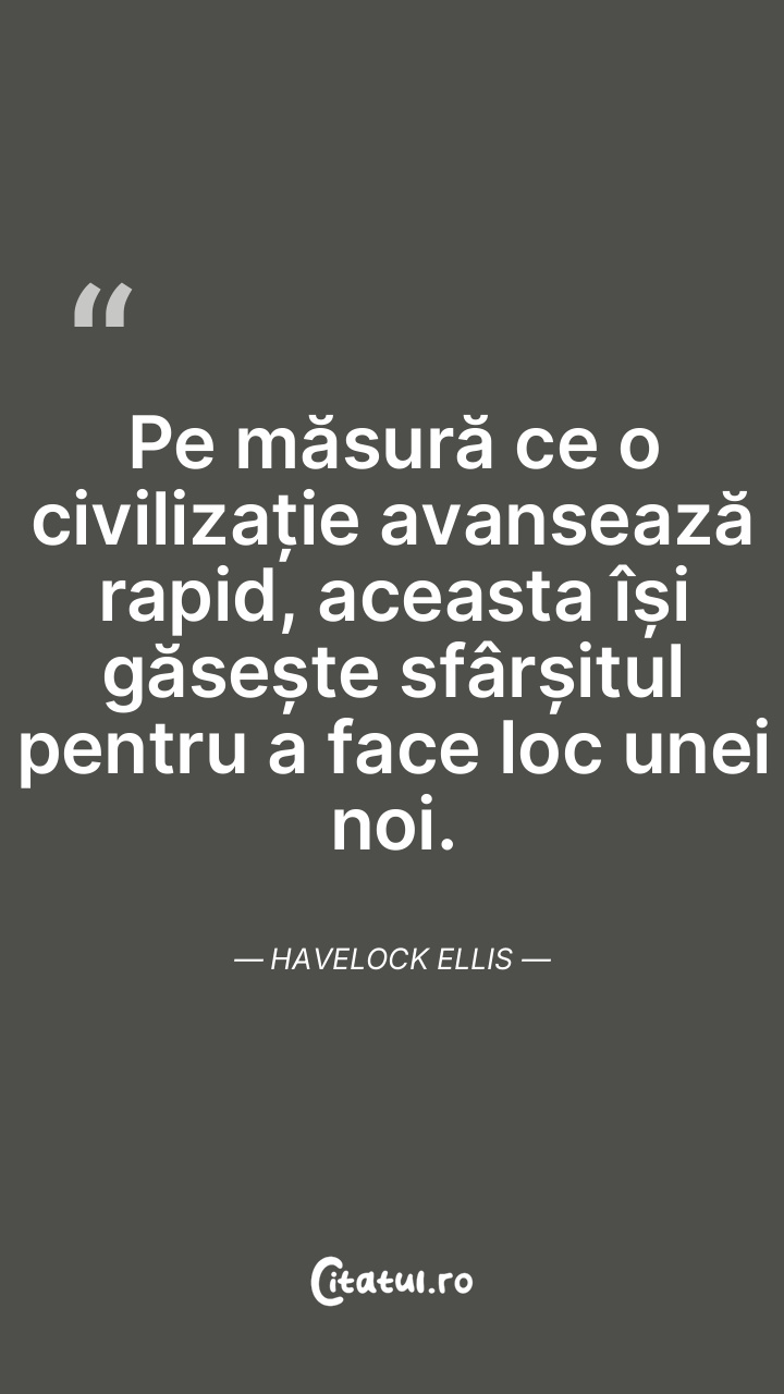 Pe măsură ce o civilizație avansează rapid, aceasta își găsește sfârșitul pentru a face loc unei noi. Havelock Ellis