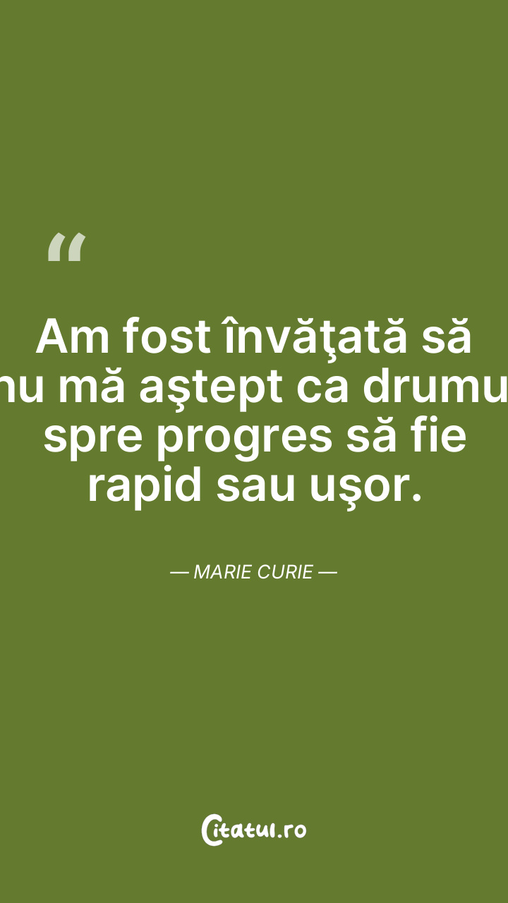 Am fost învăţată să nu mă aştept ca drumul spre progres să fie rapid sau uşor. Marie Curie