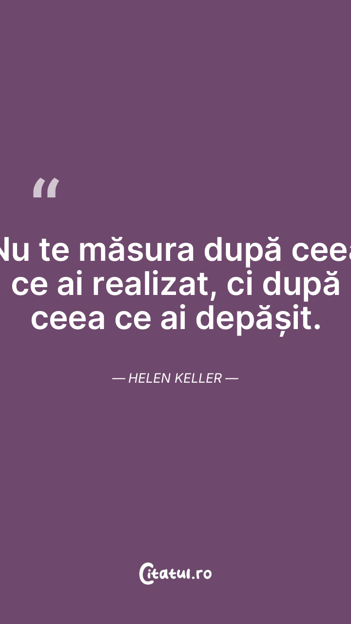 Nu te măsura după ceea ce ai realizat, ci după ceea ce ai depășit. Helen Keller