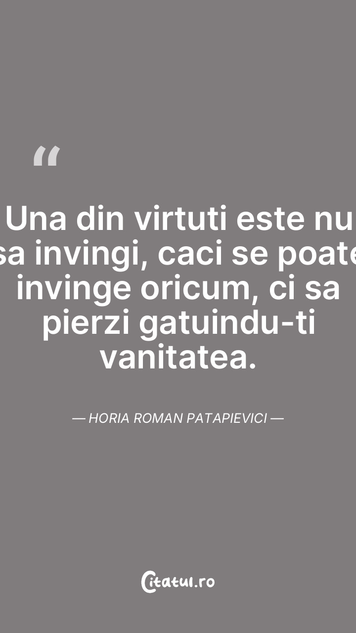 Una din virtuti este nu sa invingi, caci se poate invinge oricum, ci sa pierzi gatuindu-ti vanitatea. Horia Roman Patapievici