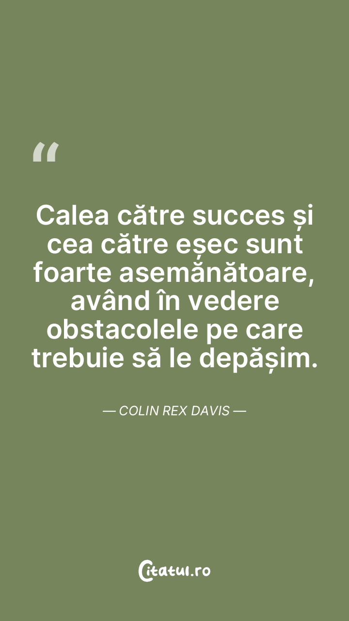 Calea către succes și cea către eșec sunt foarte asemănătoare, având în vedere obstacolele pe care trebuie să le depășim. Colin Rex Davis