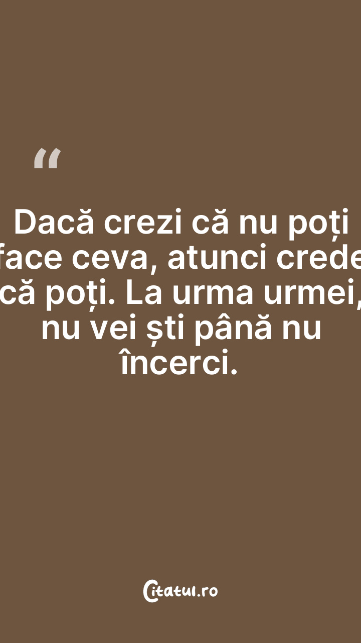 Dacă crezi că nu poți face ceva, atunci crede că poți. La urma urmei, nu vei ști până nu încerci.