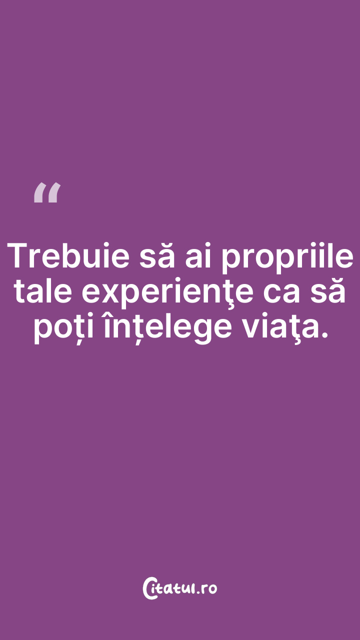 Trebuie să ai propriile tale experienţe ca să poți înțelege viaţa.
