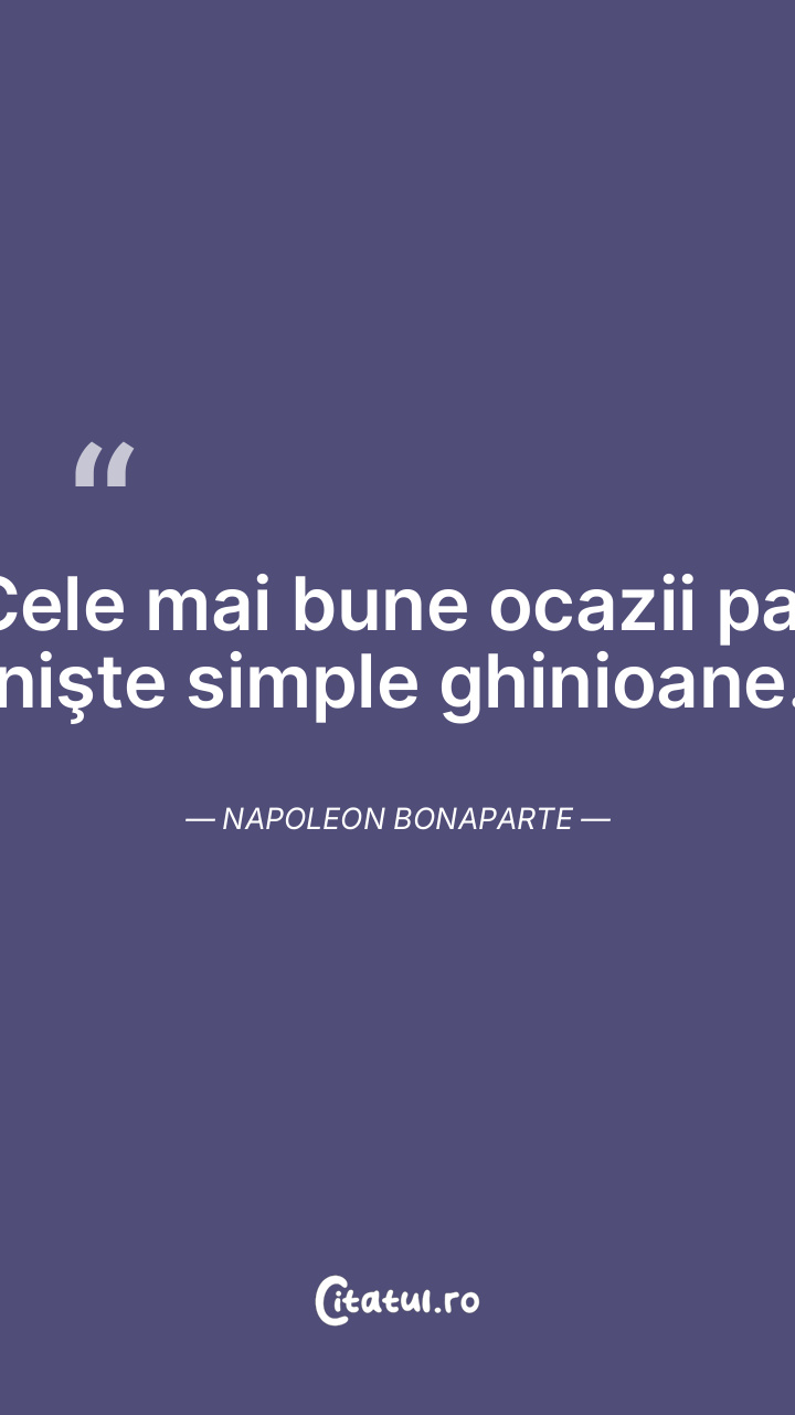 Cele mai bune ocazii par nişte simple ghinioane. Napoleon Bonaparte