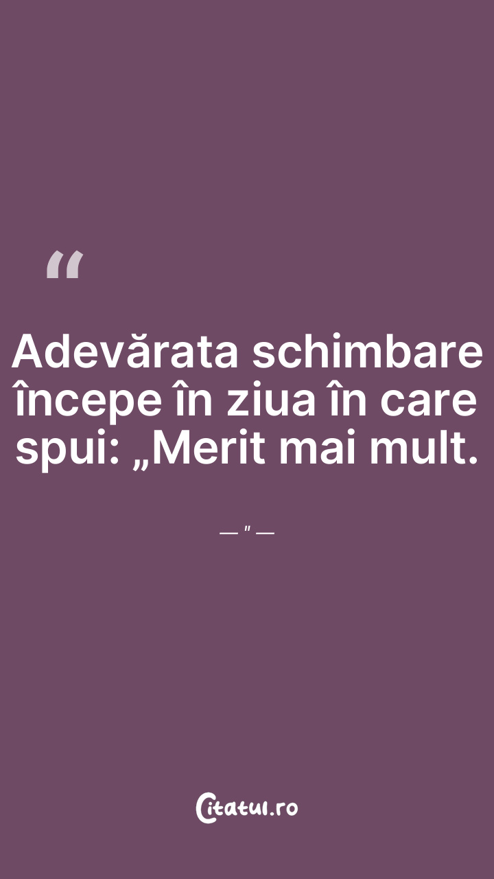 Adevărata schimbare începe în ziua în care spui: „Merit mai mult."