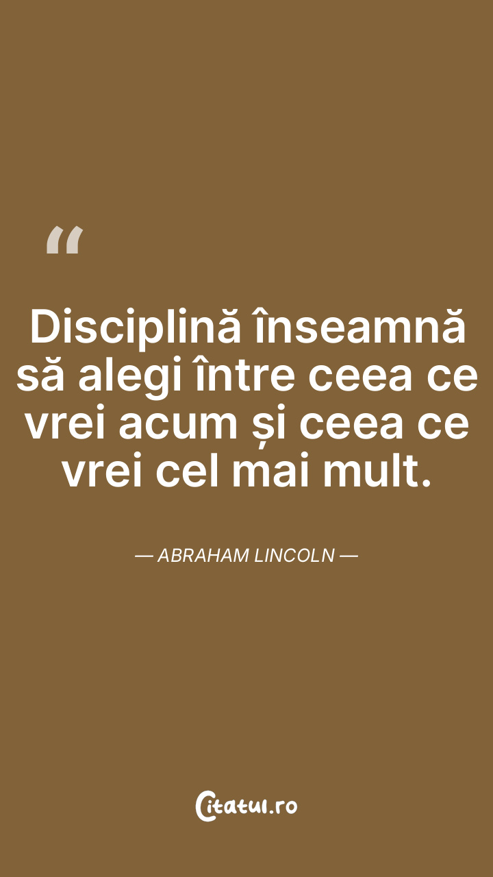 Disciplină înseamnă să alegi între ceea ce vrei acum și ceea ce vrei cel mai mult. Abraham Lincoln