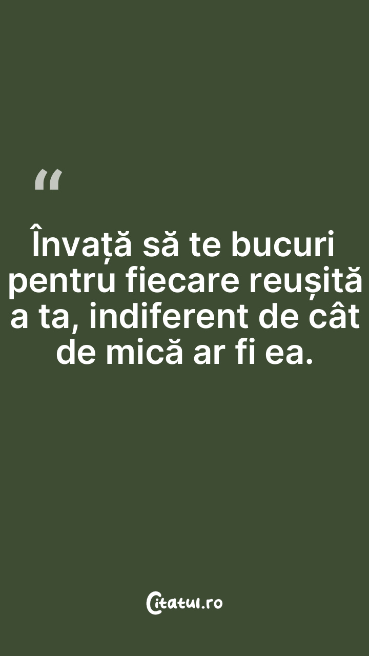 Învață să te bucuri pentru fiecare reușită a ta, indiferent de cât de mică ar fi ea.