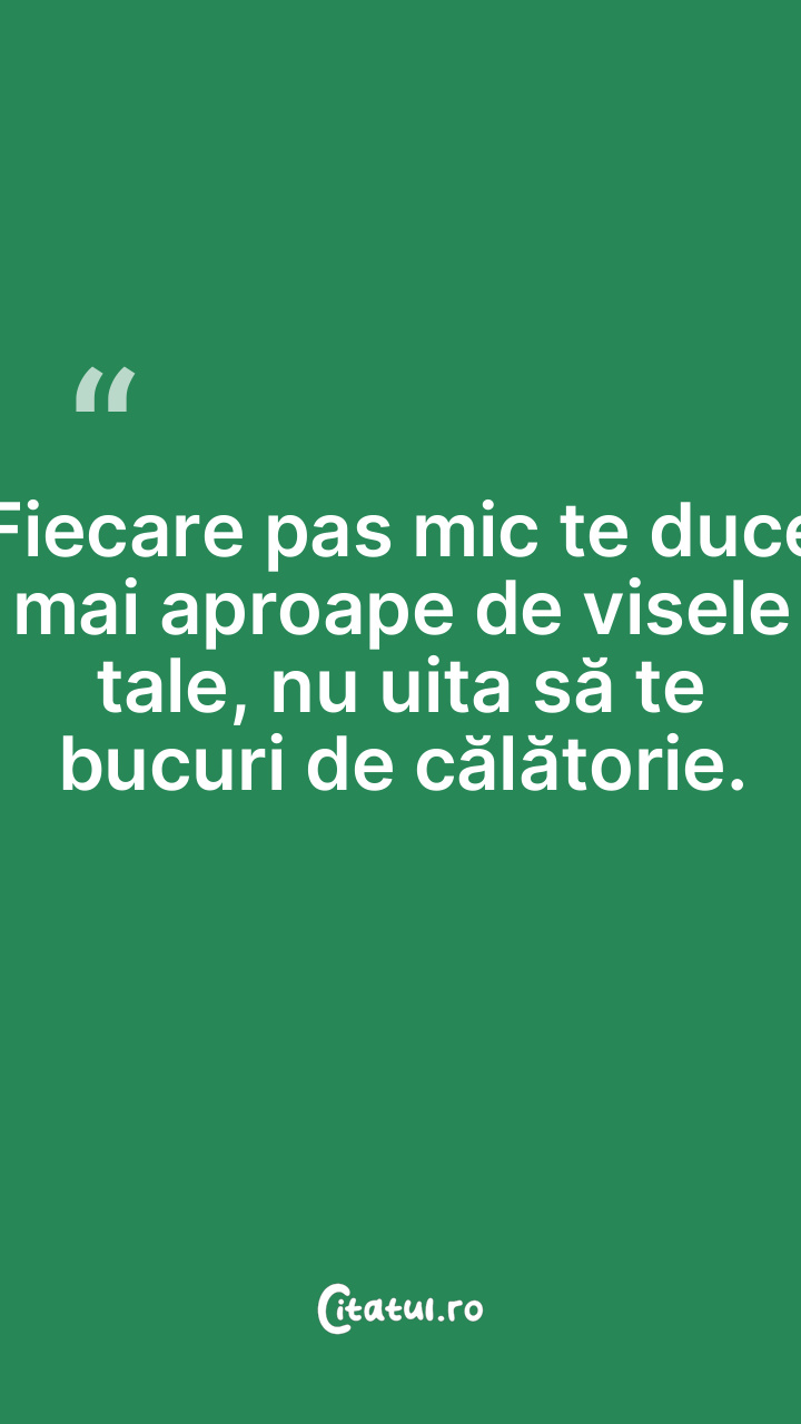Fiecare pas mic te duce mai aproape de visele tale, nu uita să te bucuri de călătorie.