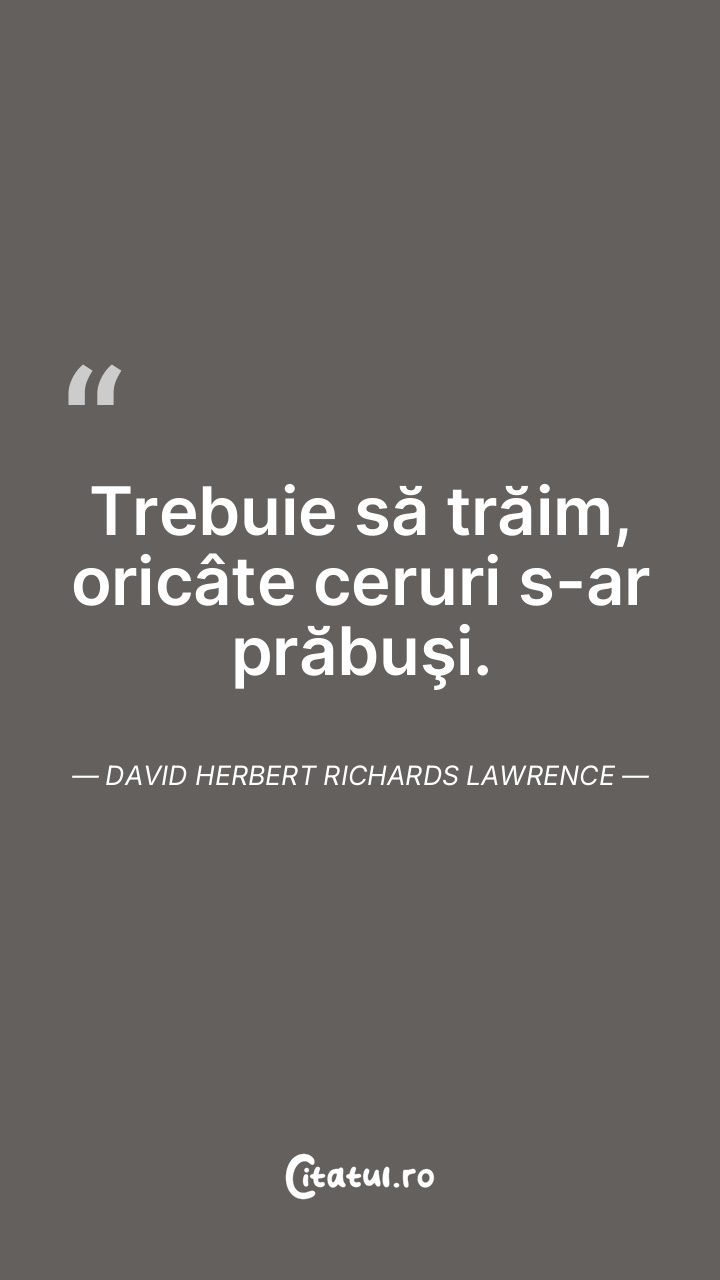 Trebuie să trăim, oricâte ceruri s-ar prăbuşi. David Herbert Richards Lawrence