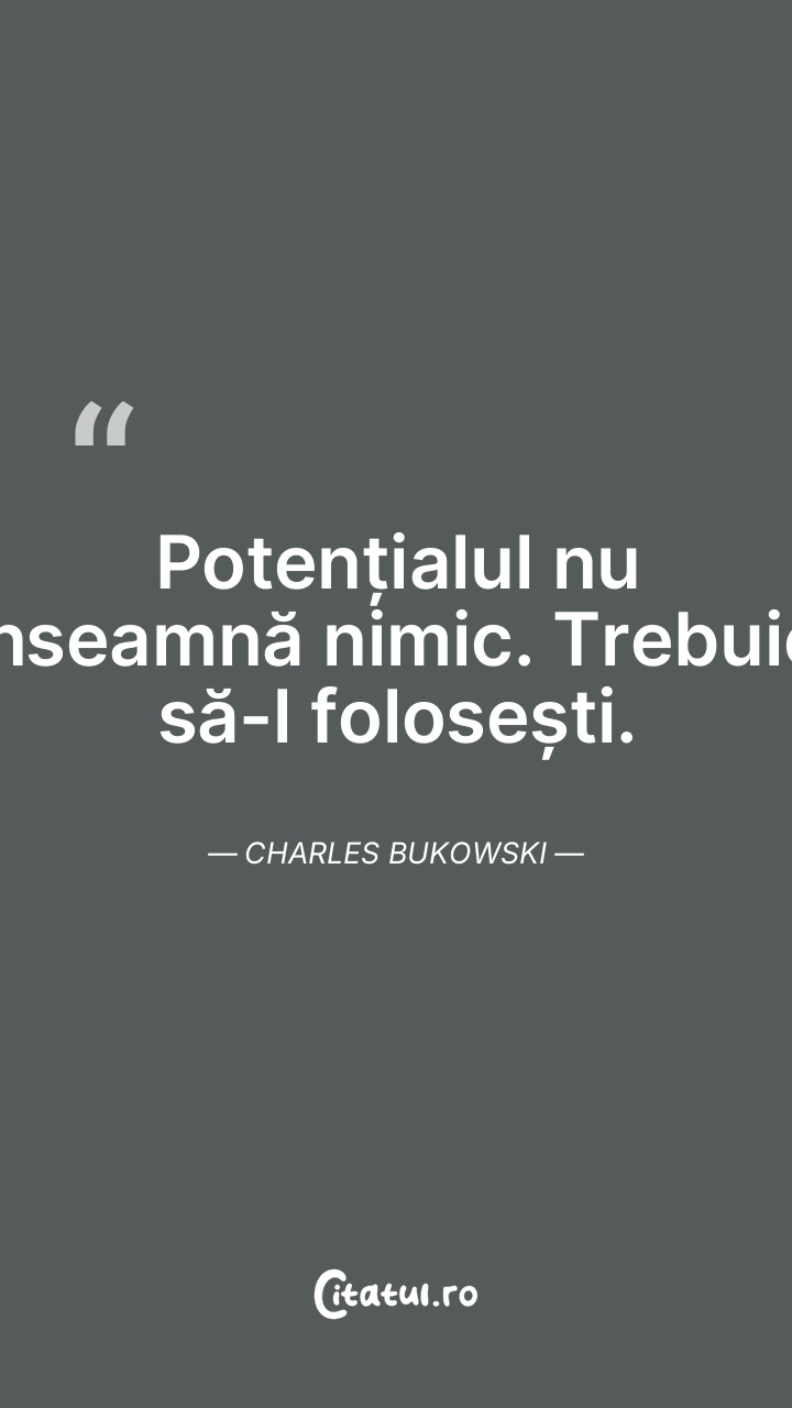 Potențialul nu înseamnă nimic. Trebuie să-l folosești. Charles Bukowski