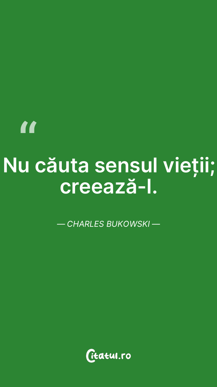 Nu căuta sensul vieții; creează-l. Charles Bukowsk...