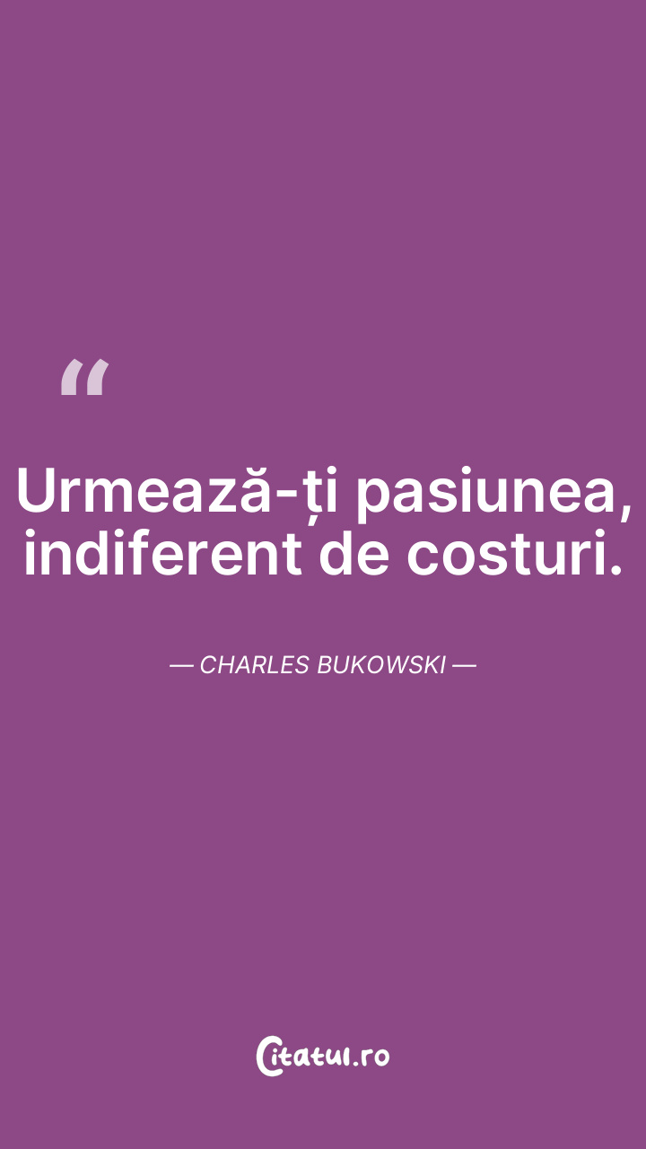 Urmează-ți pasiunea, indiferent de costuri. Charles Bukowski
