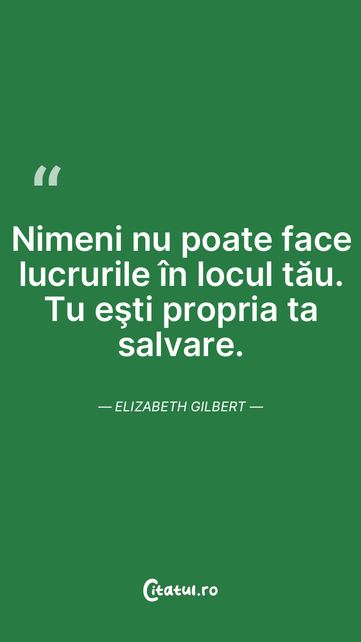 Nimeni nu poate face lucrurile în locul tău. Tu eşti propria ta salvare. Elizabeth Gilbert