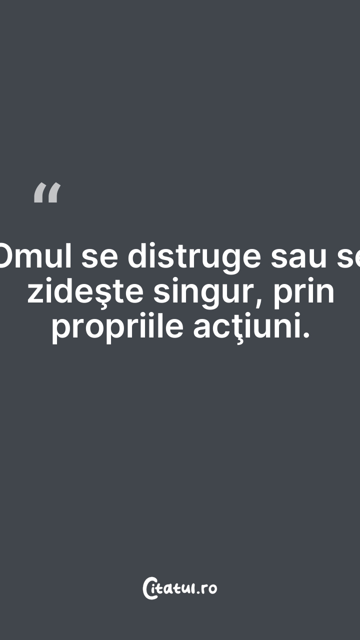Omul se distruge sau se zideşte singur, prin propriile acţiuni.