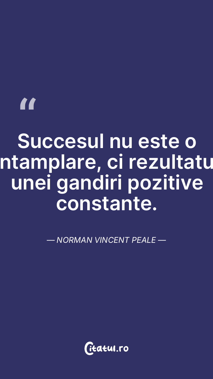 Succesul nu este o intamplare, ci rezultatul unei gandiri pozitive constante. Norman Vincent Peale
