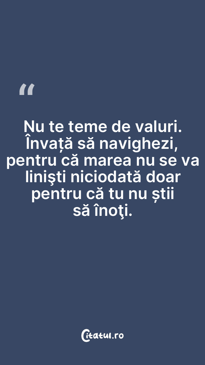 Nu te teme de valuri. Învață să navighezi, pentru că marea nu se va linişti niciodată doar pentru că tu nu știi să înoţi.
