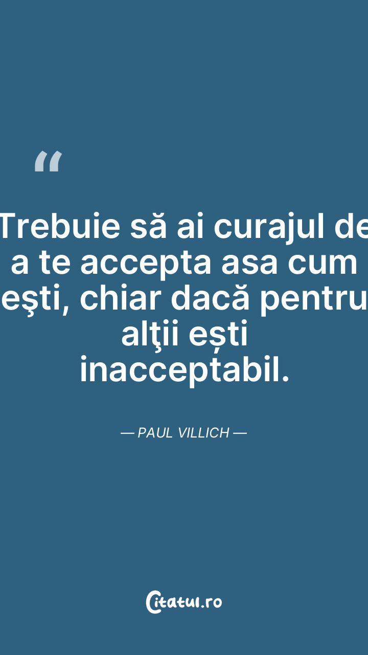 Trebuie să ai curajul de a te accepta asa cum eşti, chiar dacă pentru alţii ești inacceptabil. Paul Villich