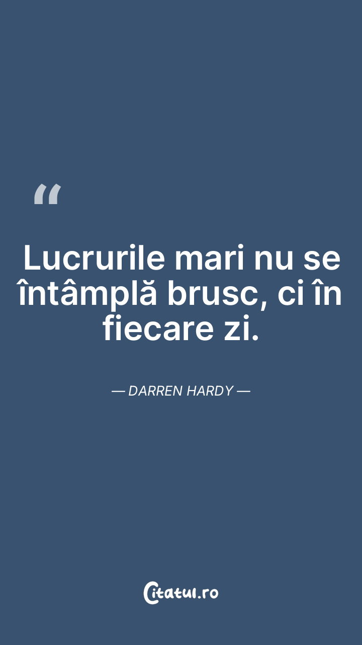 Lucrurile mari nu se întâmplă brusc, ci în fiecare zi. Darren Hardy