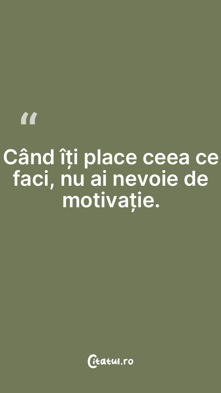 Când îți place ceea ce faci, nu ai nevoie de motivație.
