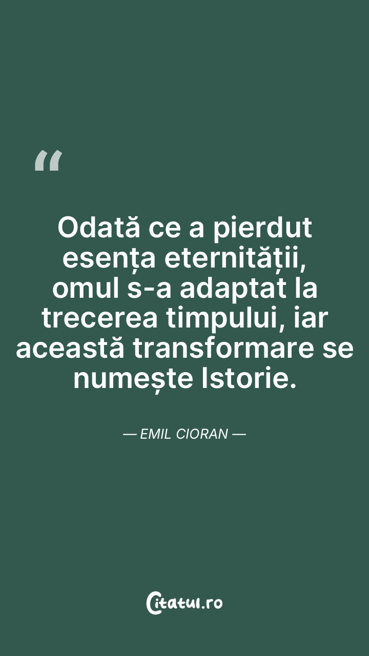 Numai cel care a distanțat timpul de viață simte greutatea acestuia, trăind drama umană și conștientizând cum se apropie sfârșitul. Emil Cioran