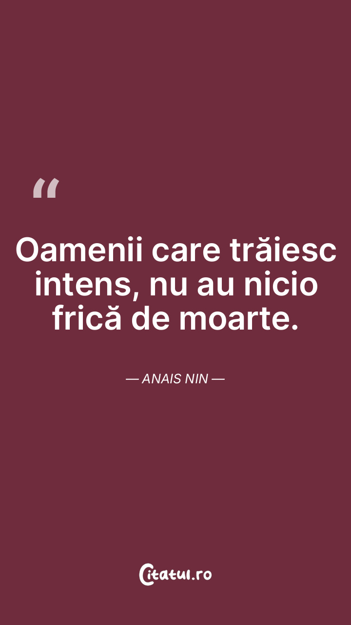 Cei care experimentează viața intens nu au frică de sfârșitul ei. Anais Nin