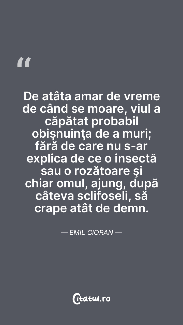 Oamenii sunt dispuși să îmbrățișeze moartea, dar nu și momentul inevitabil al acesteia, preferând să trăiască în iluzia controlului. Emil Cioran