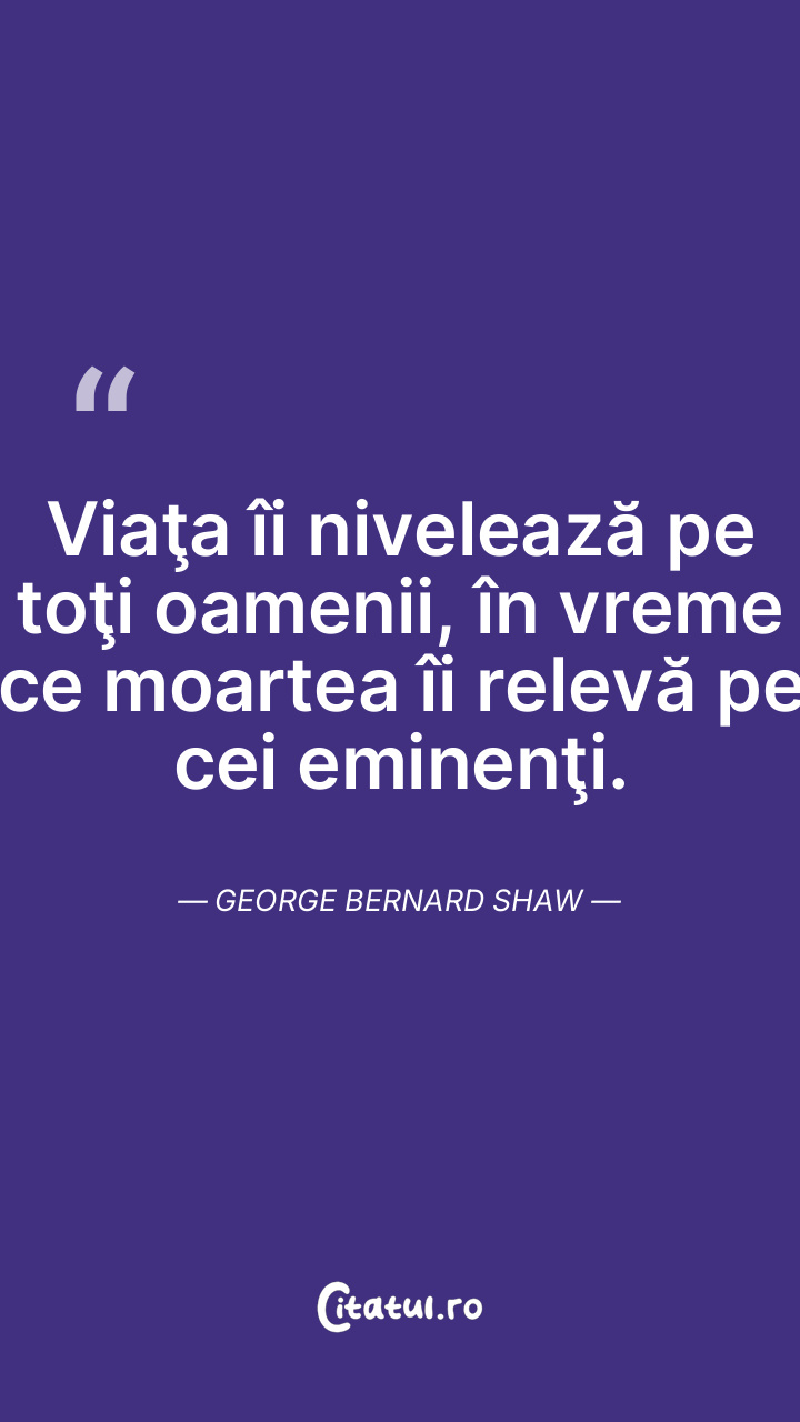 Viața aduce o egalitate între oameni, în timp ce moartea îi face pe cei remarcabili să fie la fel. George Bernard Shaw