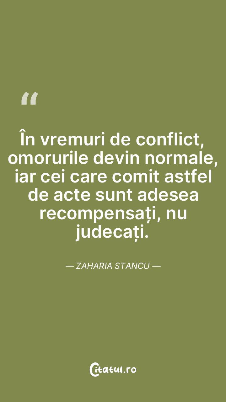 Adesea, când cineva consideră că viața altora nu are valoare, de fapt, își prețuiește propria existență mult mai mult. Zaharia Stancu