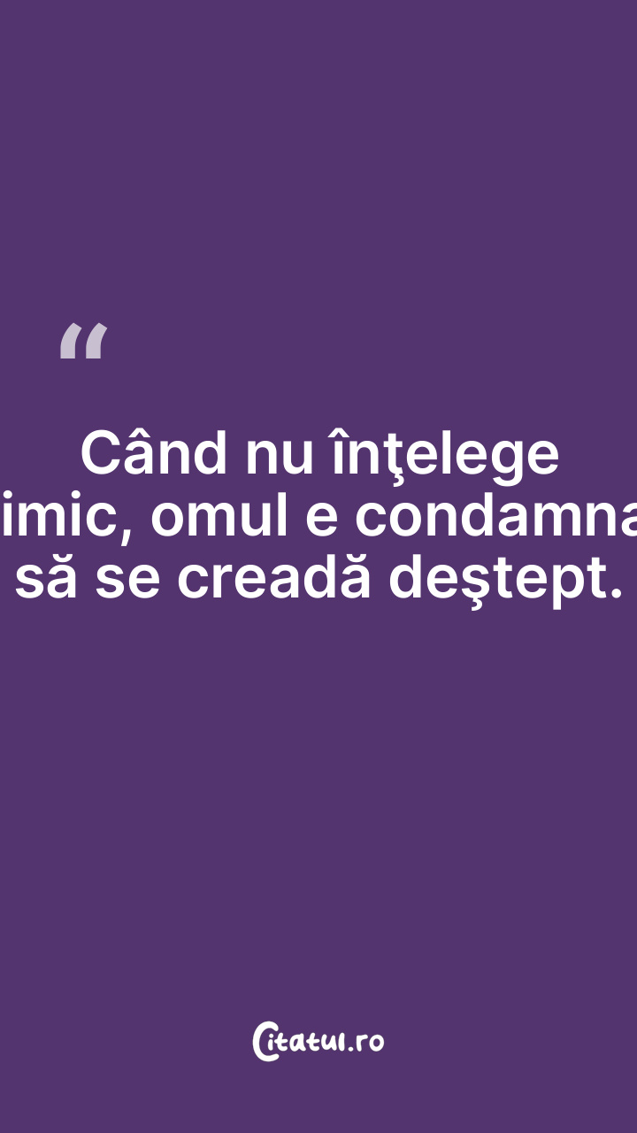 Omul care nu dă nimic merită să fie sărac. ... Categorie: citate oameni Dificultate: Ușor de citit și înțeles Votează: ★ ★ ★ ★ ★ (0/5 din 0) Distribuiți acest citat? Alegeți platforma preferată: Salvează citatul in telefon/pc Omul care nu dă nimic merită să fie sărac. Copiază Favorite Eroare