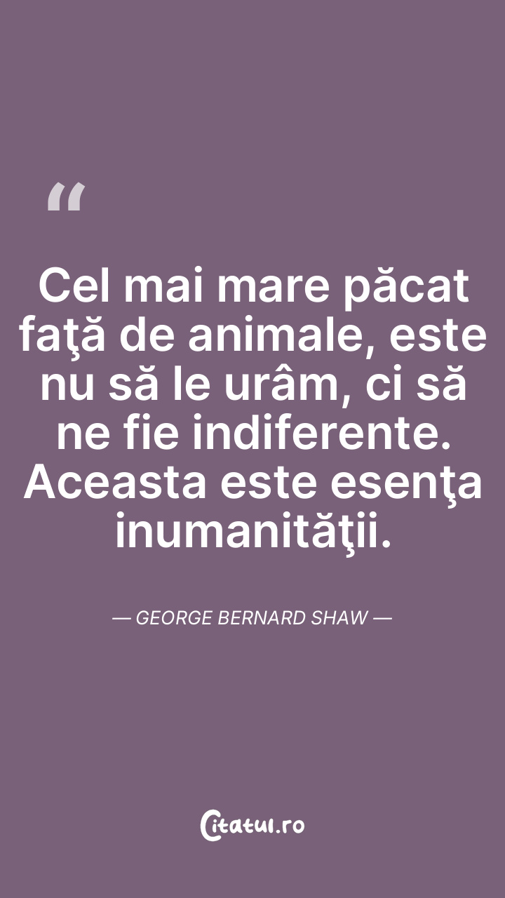 Dacă un grup de fiinţe de pe altă planetă ar ateriza pe pămânat - fiinţe care se consideră superioare omului aşa cum tu te consideri faţă de animale - le-ai garanta asupra ta drepturile pe care tu ţi le atribui faţă de ele? George Bernard Shaw