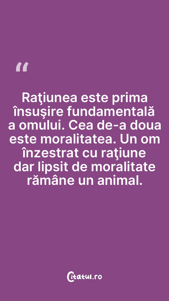 Raţiunea este cel mai bun slujitor al omului, când e însoţită de moralitate, sau cel mai periculos stăpân, când e lipsită de moralitate.
