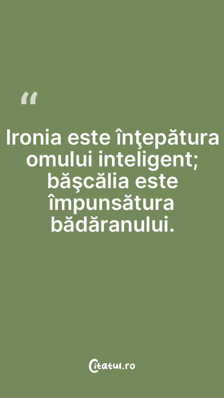 Ironia este umorul omului inteligent; băşcălia este umorul prostului.