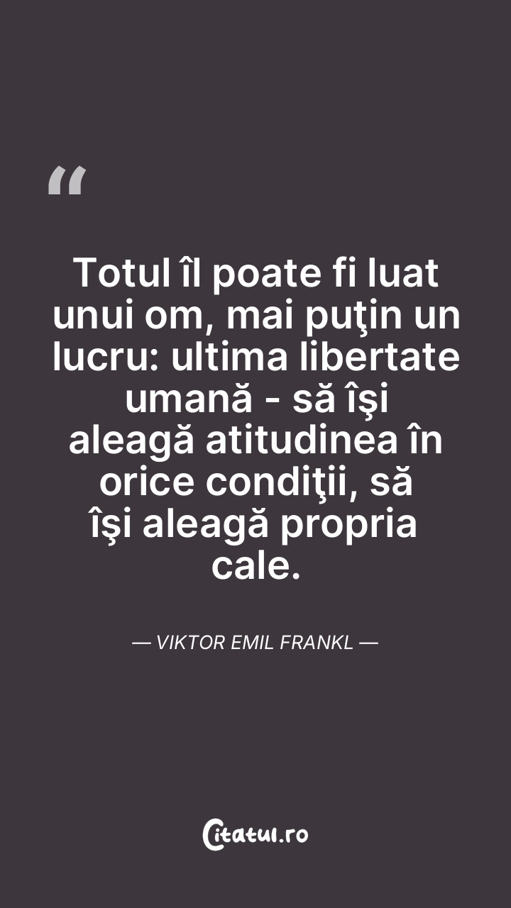 Cea mai mare libertate umană este aceea de a-şi alege atitudinea în orice circumstanţe de viaţă. Viktor Emil Frankl