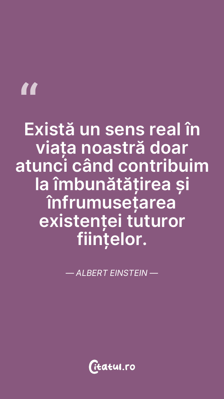 Valoarea reală a unei persoane se măsoară prin capacitatea sa de a se desprinde de ego-ul personal. Albert Einstein